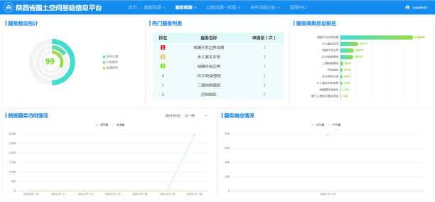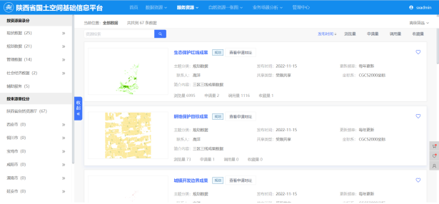 按照“集约高效、共享开放、安全可靠、按需服务”的原则,陕西省打造服务共享中心与数据共享中心,健全服务和数据的共享机制,实现数据服务资源的按需申请,统一登记,审核管控。通过服务资源共享管理,为厅内耕地保护、土地成片开发、防灾减灾等系统应用建设提供数据服务支撑,实现了平台统一调度。