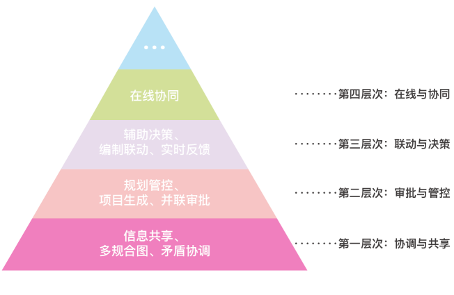 建成由多级节点构成的一体化多规信息在线和业务协同服务体系,实现多节点约束下的发改、国土、规划、环保等多部门规划成果的统一管理、深度分析、全面融合,多部门业务全流程并联审批、业务协同。