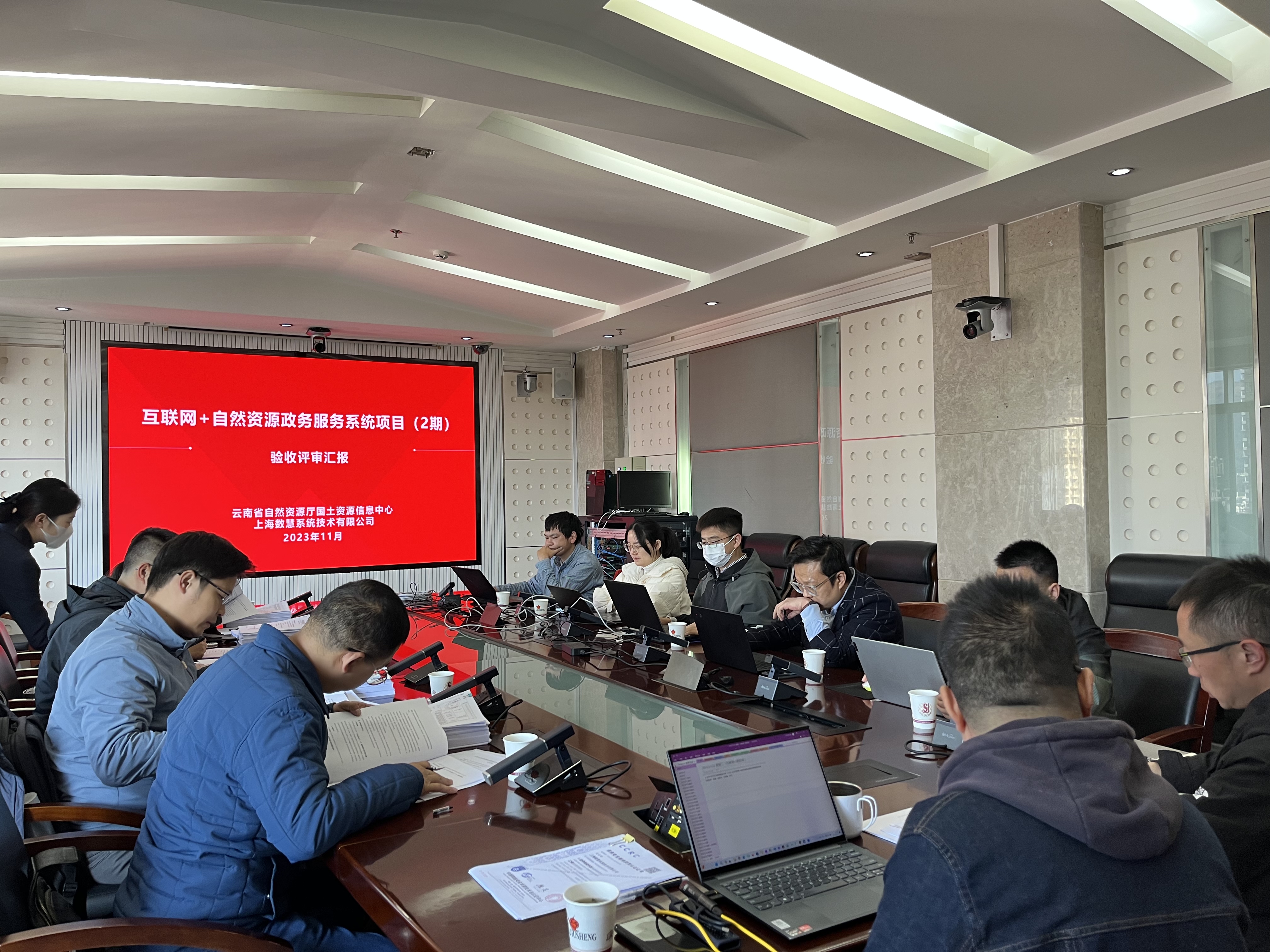 今天下午,云南省自然资源厅国土资源信息中心组织专家对互联网+自然资源政务服务系统项目(2期)进行验收评审,在验收会会上专家对项目建设成果给与认可,一致同意项目通过验收。
