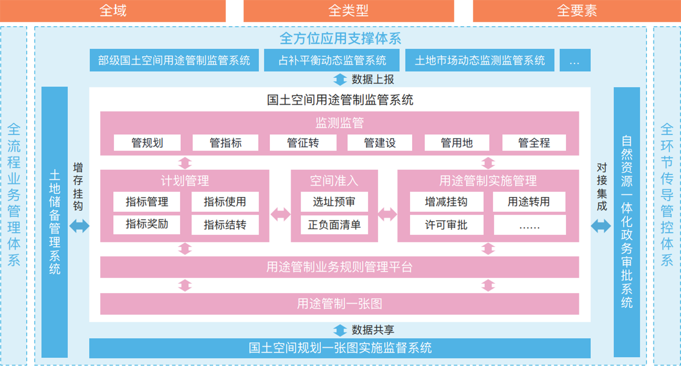 以数据为基础底座,技术为关键支撑,业务应用为最终导向,推进三维赋能自然资源全周期管理。汇集多源二三维数据,构建自然资源三维立体“一张图”;融合多元技术做强三维空间智能信息平台的核心能力中枢;搭建面向国土空间治理全过程的场景应用,包括“三维+空间规划”、“三维+管制利用”、“三维+耕地保护”、“三维+生态修复”等典型应用,推动国土空间立体化、科学化、精细化、智能化治理。